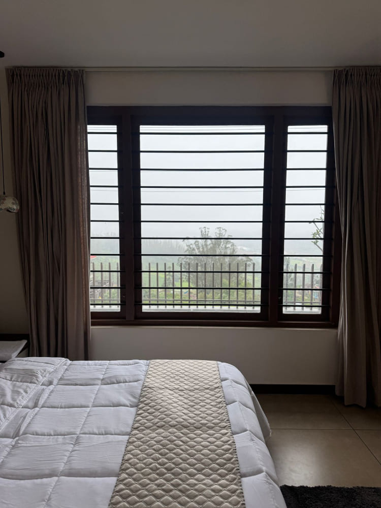 The Deluxe Room at Gypsie Cottage offers a perfect blend of comfort, luxury, and scenic beauty, making it ideal for a relaxing stay in the Nilgiris. Spacious and elegantly furnished, the room features a king-size bed with premium linens, ensuring restful nights, and a private attached bathroom with hot and cold water. Modern amenities like a flat-screen TV, free Wi-Fi, tea/coffee maker, and wardrobe add convenience to your stay. Large windows allow natural light to fill the room while offering tranquil views of the surrounding greenery. Daily housekeeping keeps the room neat and fresh, while 24-hour water supply and power backup ensure uninterrupted comfort. Guests can enjoy in-room dining if available or simply unwind and take in the serene ambiance. The combination of stylish interiors, modern facilities, and peaceful surroundings makes the Deluxe Room a perfect choice for couples, families, or solo travelers seeking a rejuvenating hill station experience.